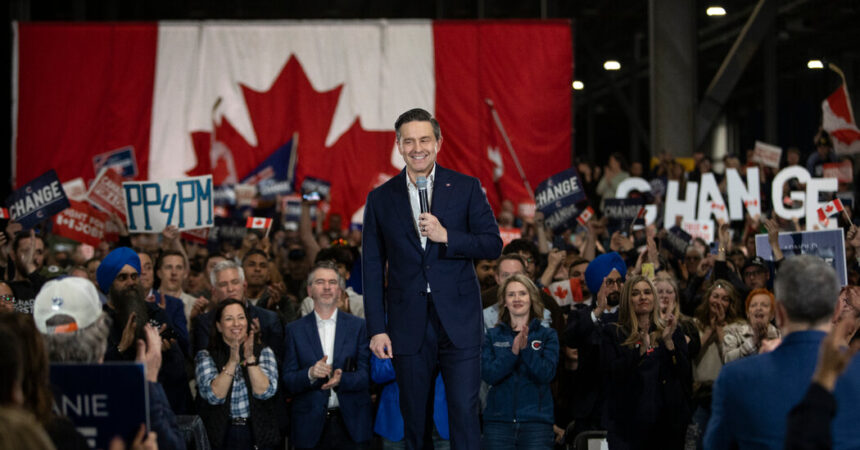 Most polls show Mr. Poilievre and the Conservatives behind the Liberal Party, led by Prime Minister Mark Carney, 60, by about seven percentage points.