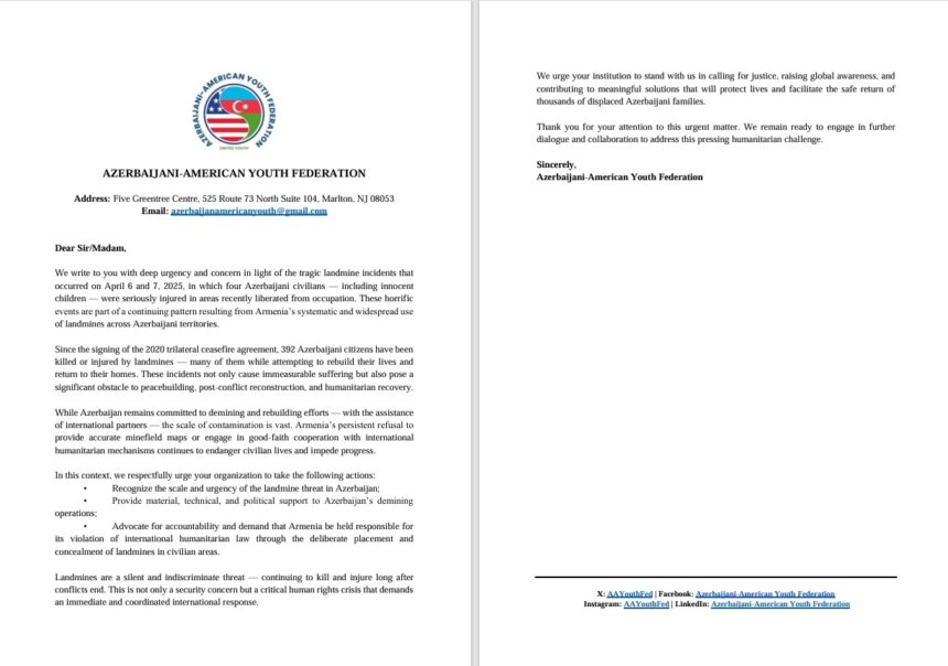 The letters said that landmines and unexploded ordnance planted
