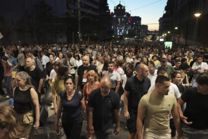 Thousands of students joined a silent march through Belgrade on Monday to…