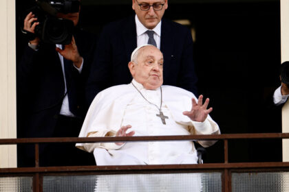Pope Francis made his first, brief, appearance in more than six weeks…