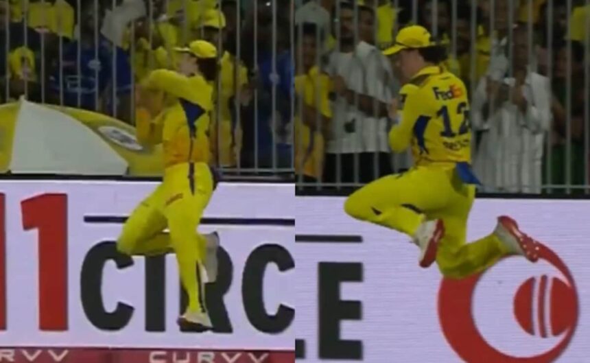 Chennai Super Kings’ star player Dewald Brevis showed great athleticism to take a superb catch on the boundary line during his side’s IPL 2025 match vs Punjab Kings at MA Chidambaram Stadium, Chennai on Wednesday. PBKS batter Shashank Singh smashed a Ravindra Jadeja delivery towards deep mid-wicket. Brevis was the fielder stationed there. He timed his jump to perfection and grabbed the ball. However, he quickly realised that he was to step outside the boundary ropes and thus released the ball in the air before going on the other side. The ball would have fallen at the other end so Brevis jumped again from outside the ropes and thew the ball in the air again, this time inside the field. He then came inside the boundary line and finally took the catch.