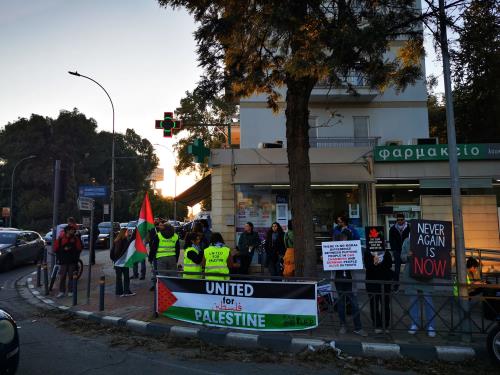 Against the escalation of violence in Gaza and violating the agreed ceasefire by Israeli forces, a group of citizens went on Friday afternoon at a protest organized by United For Palestine near the Israeli Embassy in Nicosia.