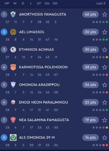 The race ends on Monday 31/3 with the game between Anorthosis and National Achna, which will begin at 19:00. A match with no high -ranking interest as both teams feel completely safe in terms of continuity.