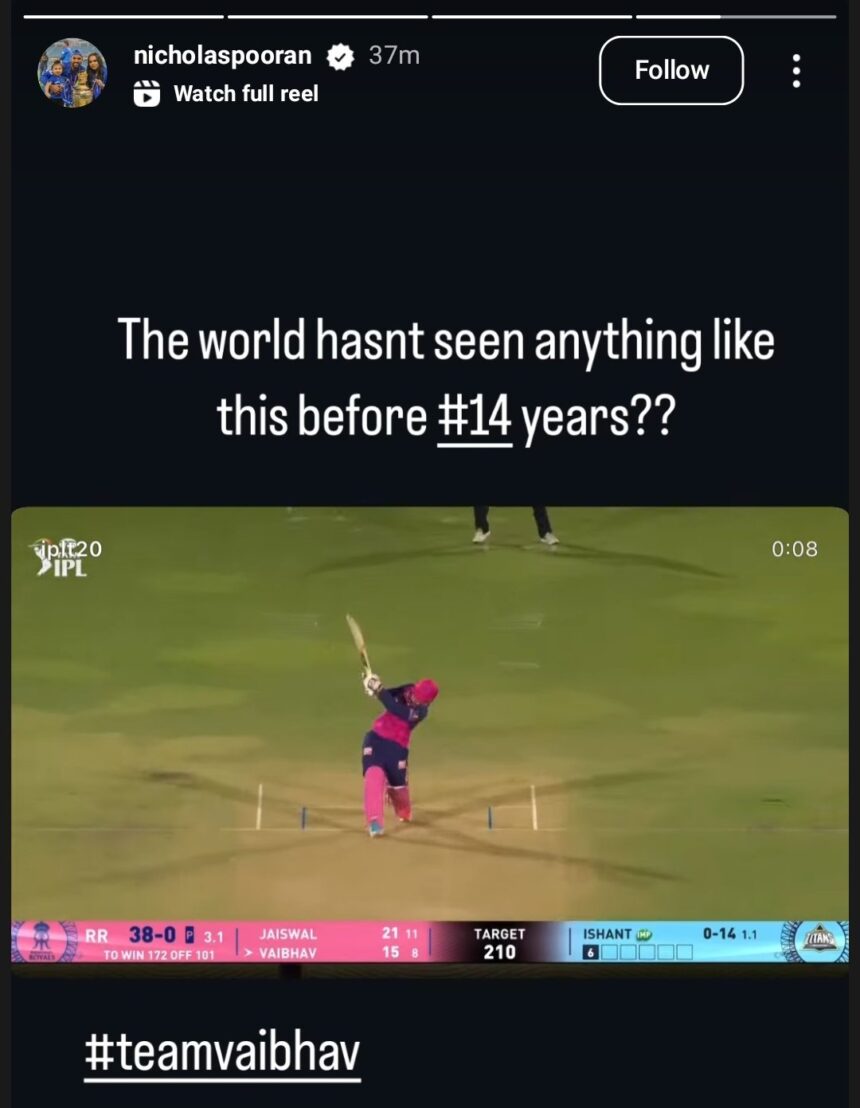 Vaibhav Suryavanshi, Rajasthan Royals’ 14-year-old prodigy, created history on Monday with a terrific 35-ball-century against Gujarat Titans in their IPL 2025 match. In the chase of 210 in Jaipur, the teenager helped RR clinch the victory in just 15.5 overs and eight wickets in hand. Suryavanshi is now the second fastest centurion in IPL after Chris Gayle’s 30-ball knock for RCB and fastest ever for any Indian. As the Bihar-born prodigy shattered many records, wishes from all over the world started pouring in.