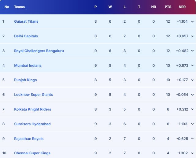 Here’s how the IPL 2025 points table looks like after CSK vs SRH: