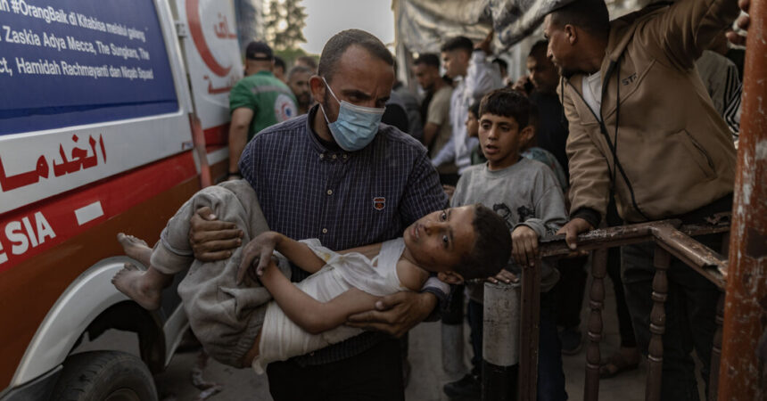 Multiple videos verified by The New York Times show an explosion and its chaotic aftermath at the Dar al-Arqam school in the Tuffah neighborhood of Gaza City, where civilians were sheltering. In the videos, people can be seen carrying victims, including children, to ambulances as fires burn in the background.