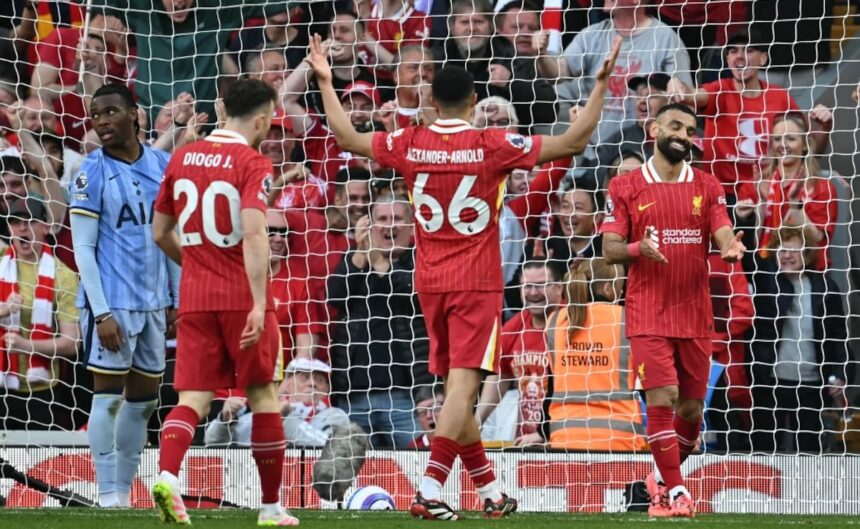 Liverpool demolished Tottenham 5-1 to clinch the Premier League title at an impassioned Anfield on Sunday, sealing a record-equalling 20th English top-flight crown. Arne Slot’s men stormed back after conceding a surprise early goal to dominate the first half as the decibel level soared among 60,000-plus crowd. Liverpool, who can no longer be caught by second-placed Arsenal, are now level with bitter rivals Manchester United as the joint-most successful club in English top-flight history. Slot’s men started on the front foot at an expectant Anfield after a stirring rendition of club anthem “You’ll Never Walk Alone” in the warm spring sunshine.