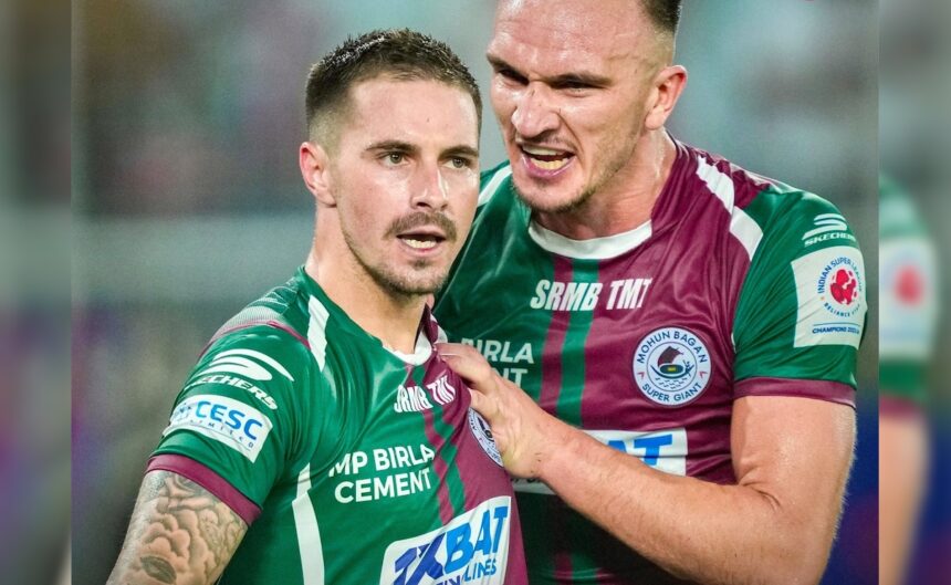 Mohun Bagan Super Giant on Saturday secured a memorable Indian Super League double, lifting the ISL Cup after beating Bengaluru FC 2-1 in a tense final in Kolkata to add to the League Winners’ Shield it had won earlier in the season. After a goal-less first half, Mohun Bagan’s Alberto Rodriguez scored an own goal in the 49th minute to give Bengaluru FC the lead. Mohun Bagan striker Jason Cummings then struck from the penalty spot to restore parity in the 72nd minute. The match went into the extra time and Jamie Maclaren scored the decisive goal after six minutes (96th) to the wild celebrations of the vociferous Mohun Bagan supporters at the Salt Lake Stadium.