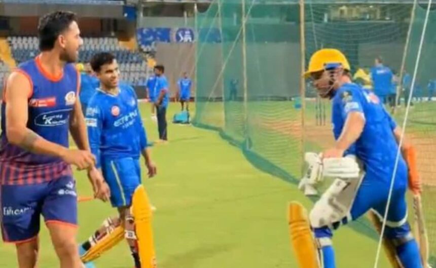 Ahead of the game against MI on Sunday, Dhoni was seen having some banter with former CSK pacer Deepak Chahar, who is now part of the team in blue.