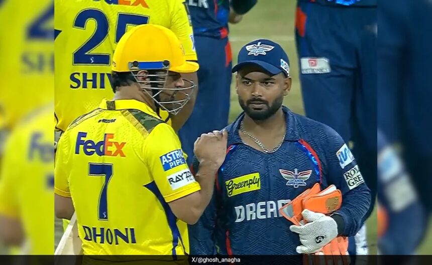 A quick chat between MS Dhoni and Rishabh Pant.#CSKvsLSG #LSGvsCSK #LSGvCSK pic.twitter.com/Y4VhOxk9dk