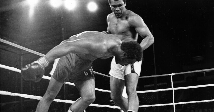 Mr. Ali won with a stunning knockout in the eighth round, after employing the “rope-a-dope” strategy of leaning on the ropes while Mr. Foreman exhausted himself with flailing punches.