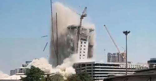 The same media broadcast images from a collapsing clock tower, as well as part of the wall in Mandalei Palace.