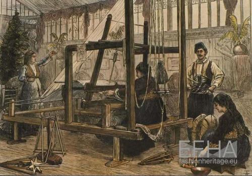 (Central Photo caption: Cypriot women weave in the loom; light from the internet.)