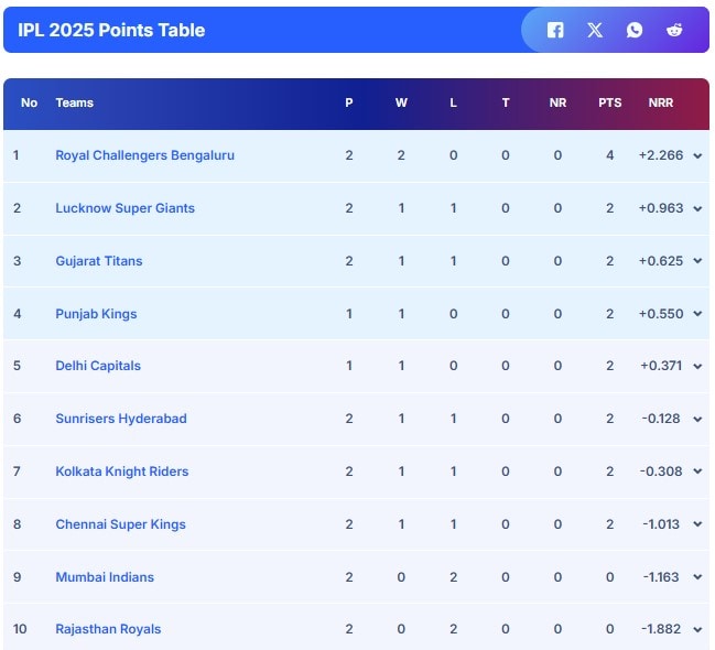 Earlier, GT looked set for a 200-plus total, when Pandya, who returned to lead the side after a one-match suspension, checked the momentum post Power Play, finishing with an impressive 2/29.